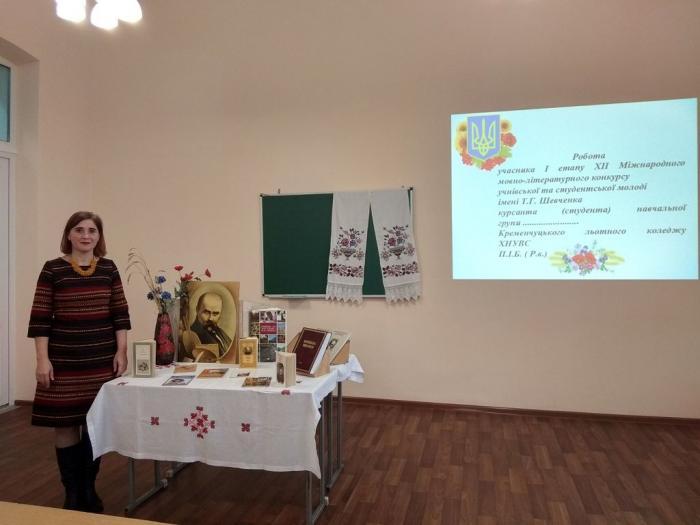 У Кременчуцькому льотному коледжі ХНУВС у межах проведення Тижня української мови та літератури відбувся І етап ХІІ Міжнародного мовно-літературного конкурсу учнівської та студентської молоді імені Т. Г. Шевченка, мета якого – вшанування творчої спадщини Великого Кобзаря, виявлення творчо обдарованої молоді, виховання у неї поваги до мови та традицій свого народу, підвищення рівня мовної освіти. До конкурсу долучилися студенти та курсанти першого року навчання відділень загальноосвітньої та фахової підготовки.
