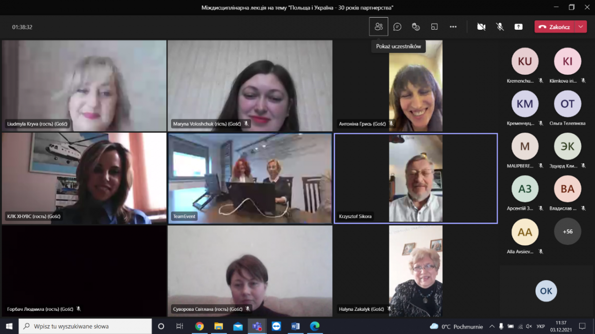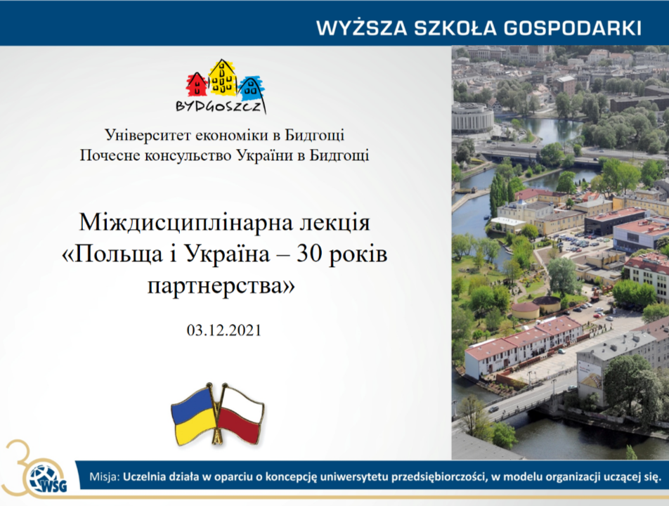В рамках налагодження співпраці з Польським Університетом, курсанти, курсантки та студенти, студентки Кременчуцького льотного коледжу ХНУВС 3 грудня 2021 р. взяли участь у відкритій міжнародній онлайн-лекції "Польща і Україна - 30 років партнерства", яку презентували Почесне консульство України в Бидгощі та університет Wyższa Szkoła Gospodarki w Bydgoszczy (Польща) присвячену подіям 1-2 грудня 1991р., згадали основні події співпраці Польщі і України від моменту коли 01.12.1991 більшість українців на референдумі підтримали незалежність України, а 02.12.1991 український суверенітет визнала Польща (першою серед усіх країн світу).